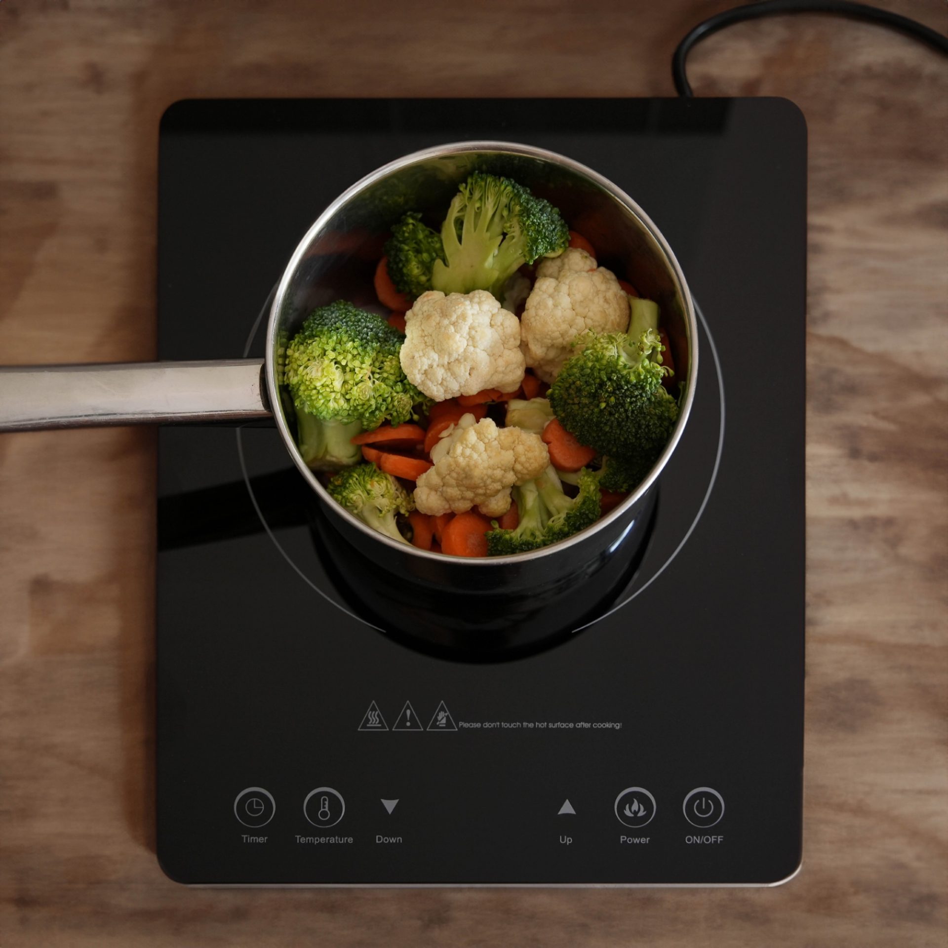 Plus, it is much safer to use than a conventional gas or electric hob. This induction hob is electromagnetic, so when you turn on the hob and set both your power and temperature, the hob will not heat up until it comes in contact with a suitable pan with a magnetic base (e.g. stainless steel or iron).