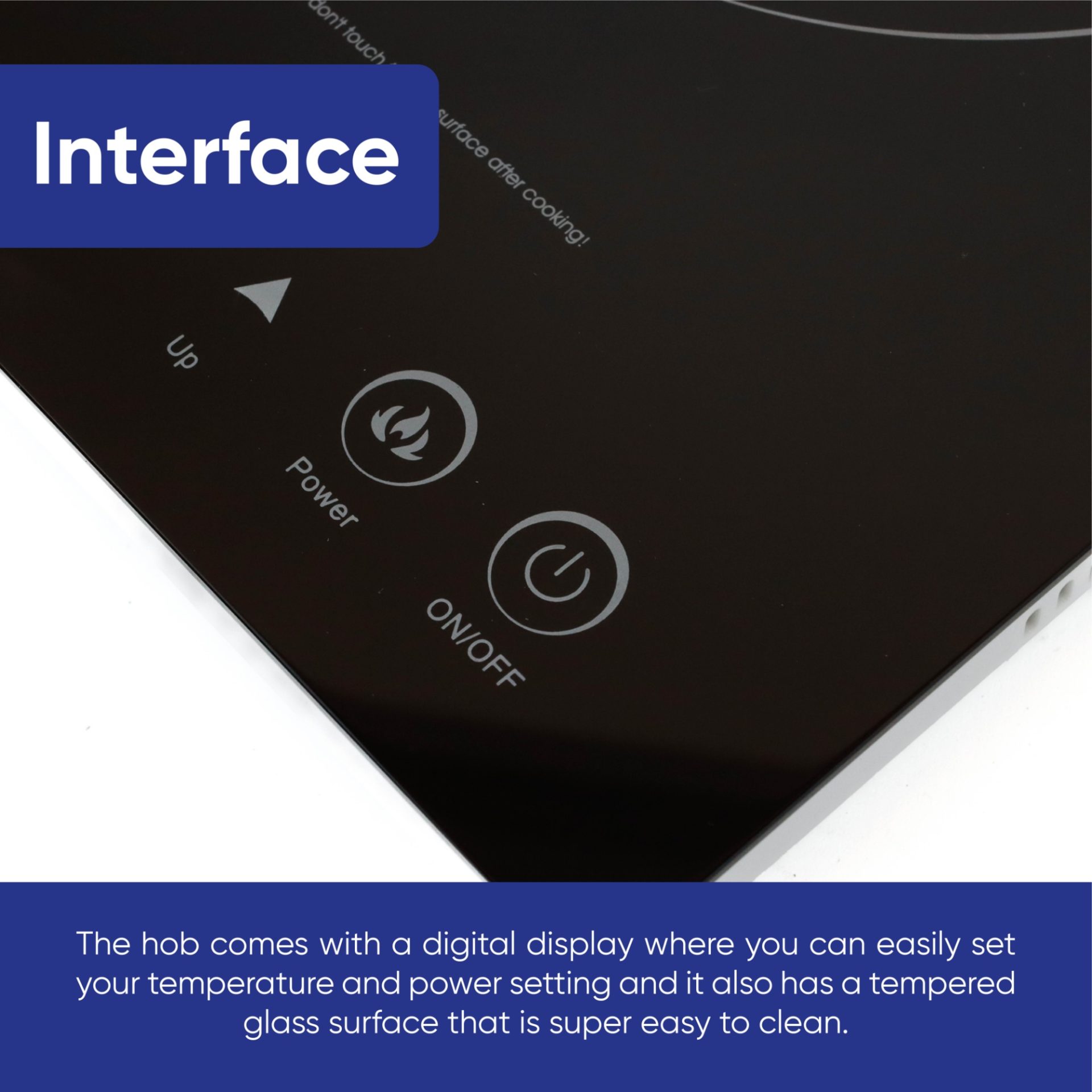 The hob comes with a digital display where you can easily set your temperature and power setting and it also has a tempered glass surface that is super easy to clean.
