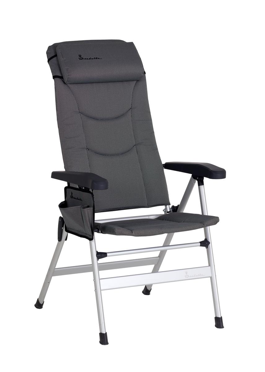 The Thor chair is a padded luxury chair with a neck cushion and armrests, and the back can be placed in eight positions, perfect on your camping trip or at home on the patio, both up to the table and for relaxing in.