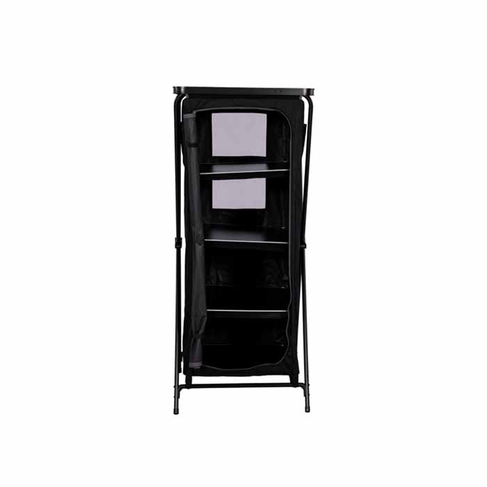 The tall Royston cupboard is a great addition to keep your camping gear organised. Folds open in seconds, simpley click on locking bars and you are done. Comes complete with table top and inner shelf tops along with side stoage pockets, rear ventilation for air flow and a carry bag.