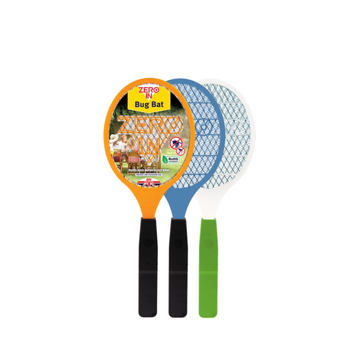 Controlling flies, wasps, and other biting insects may be done quickly and easily with the Zero In Bug Bat. With a single touch, the Bug Bat will eliminate any flying bug after the switch is depressed to activate the grid.