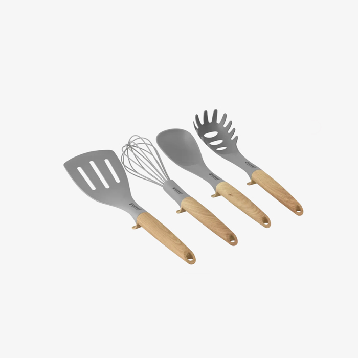 The Almada Utensil Set is a must-have for your camp kitchen, combining style and practicality. This set includes four essential tools: a spatula, whisk, serving spoon, and pasta spoon. Each utensil features a sturdy wooden handle and heat-resistant silicone head, ensuring durability and ease of use. Lightweight and easy to clean, the Almada set is perfect for preparing delicious meals outdoors, whether you’re at the campsite or on a picnic. Designed for convenience, it’s the ideal companion for any outdoor cooking adventure.