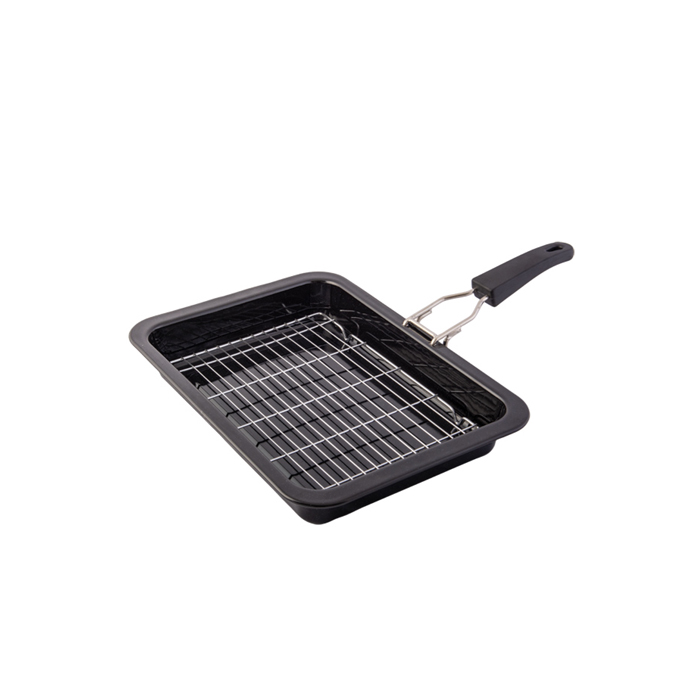 Grill pan with handle ideal for use with any BBQ or oven.