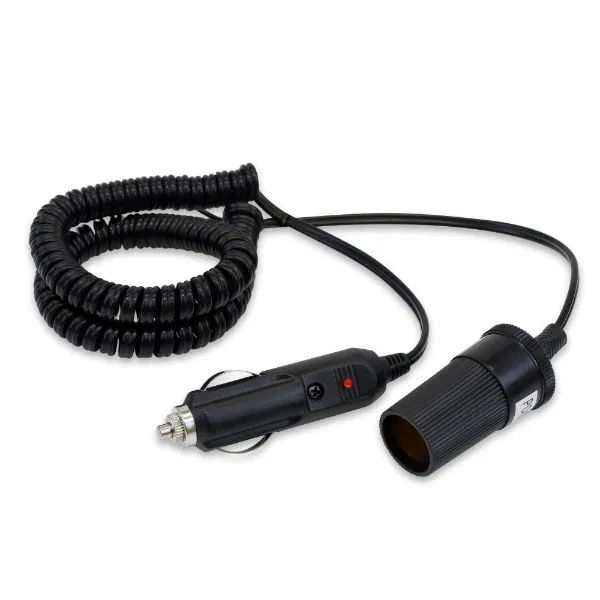A 12V coiled extension cable that is ideal for running 12V appliances that come with shorter 12V cables. The coiled lead extends to 9 feet (2.75m). It also comes with LED indicator lights and with an attached lid on the female end.