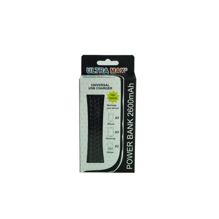 The Ultra Max Power Bank is a great back up power source while on the go. High capacity 2600mAh battery with a USB & micro USB plug.