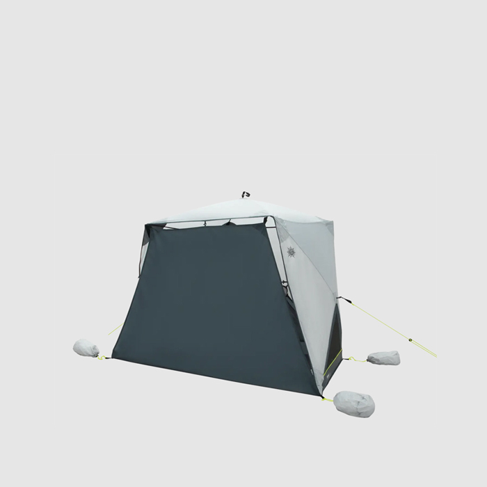 Our Rapid-pitch Lite System, which comes with poles and flysheet already linked, makes it simple to set up this beach tent for easygoing beach days. The groundsheet also serves as a practical “door” for additional protection. Sand can be put into the corner pockets for stability. Small things may be stored in mesh pockets, and spacious ventilation panels provide ideal circulation. Moreover, it has plastic sand pegs for safe pitching over loose ground.