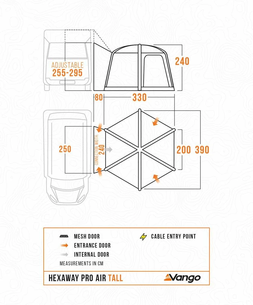 - Inflatable AirBeam Structure – With 10 years of AirBeam technology expertise, Vango ensures pole-free pitching. The system allows the awning to be erected within minutes (supplied with AirBeam pump).