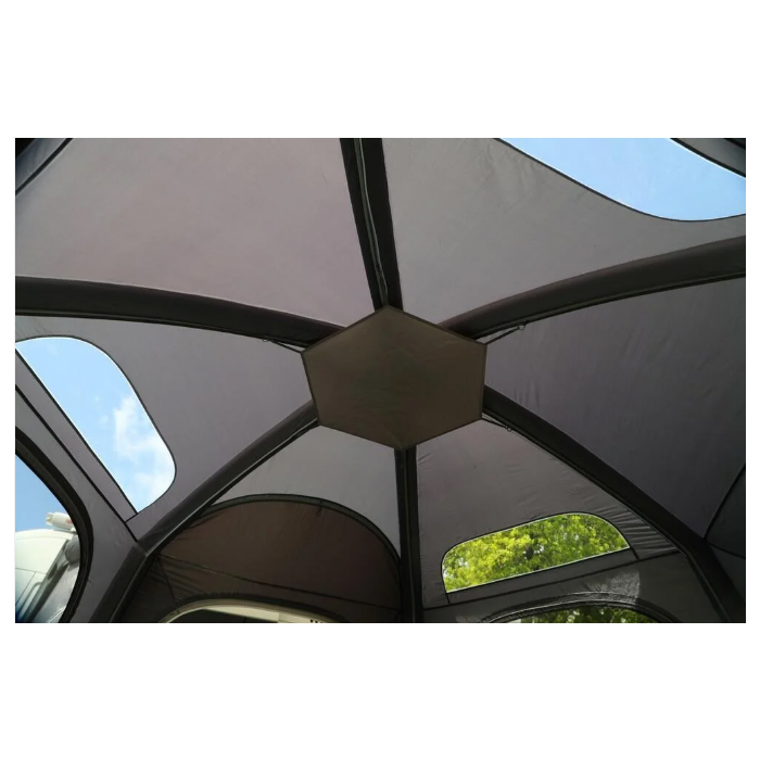 The hexagonal design ensures that you can maximise all the space when spending time with family and friends. The Sentinel ECO Pro fabric, made using recycled materials, is perfect for touring with your vehicle, and the single inflation system is quick and easy to both erect and deflate. The connecting tunnel is easily rolled away if you’re off exploring for the day and features 2 side entrance doors for easy access.