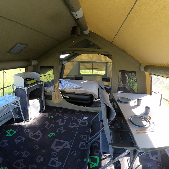 Our DURA-Air (patent-pending GB2519763.3) single-point inflation tubes are over 200% stronger and sturdier than competitors, and they include a pressure release valve to handle unexpected weather fluctuations. This four-season tent is perfect for all camping adventures, whether in hot or cold climates.