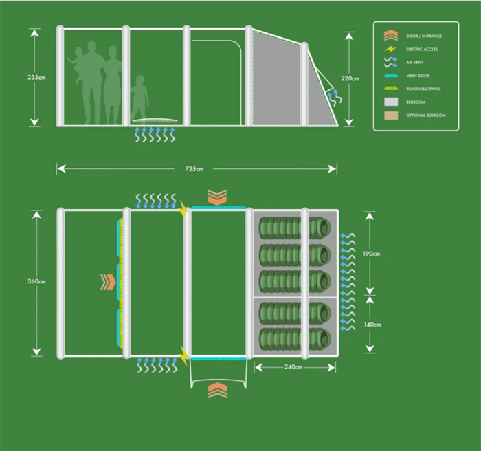 Experience the unique and revolutionary AirTek Sherwood 5.0 A.C. and redefine camping luxury. This inflatable tent merges advanced technology with impeccable craftsmanship, setting a new standard for comfort and quality.