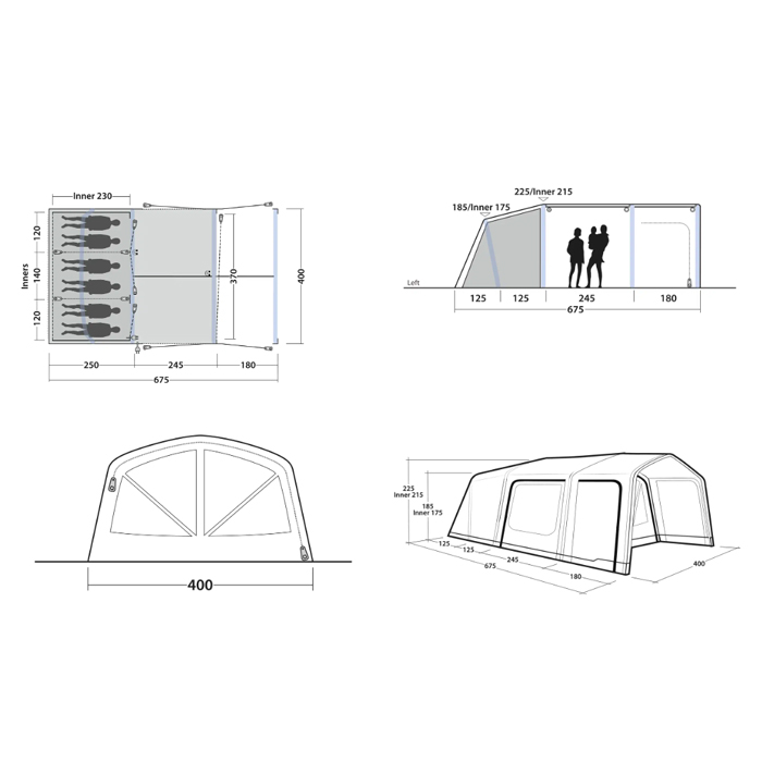 - Reliable, easy-to-operate inflate/deflate valves conveniently placed outside the flysheet