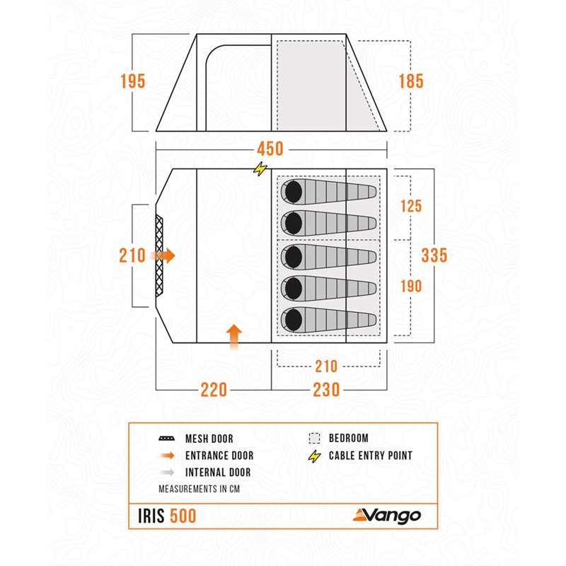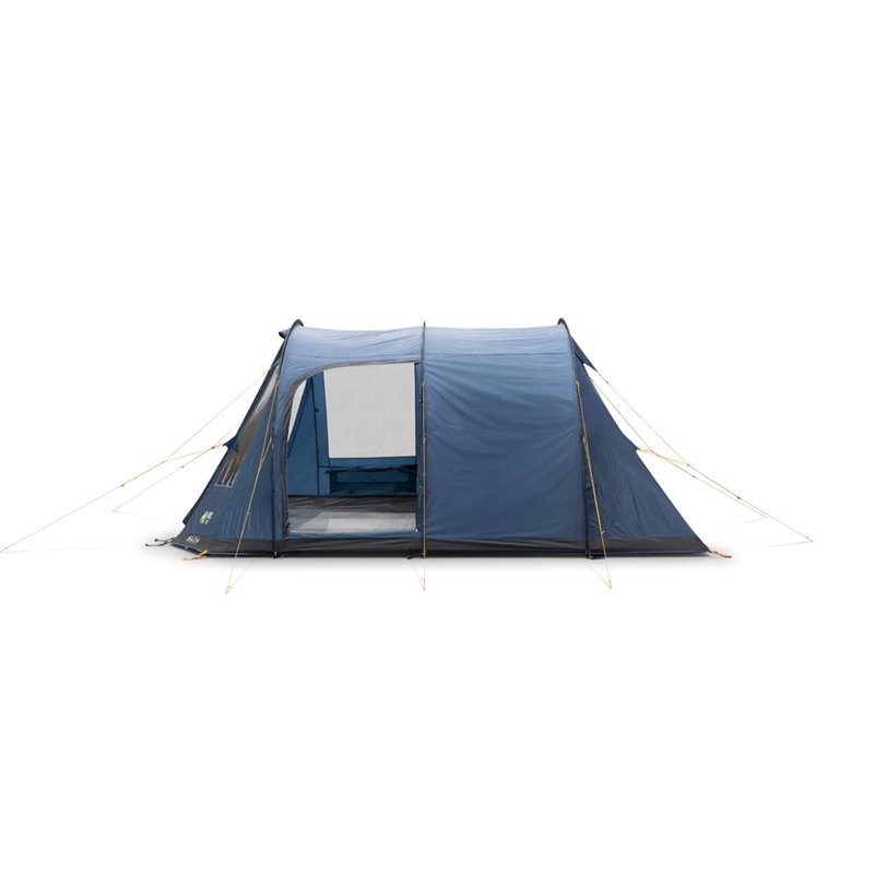 Pitching the 5 berth Powerflex Fibreglass poled tunnel tent, the Iris 500, is quick and simple. Large diamond-clear windows on this five berth tent maximise light flow and provide a light-filled, spacious area. The Iris has Vango’s Sentinel Essential fabric, which has a 3,000mmHH and is composed of recycled single-use plastic. It is also extremely waterproof. Features include ColourLok technology, which helps the fabric retain its colour against UV light, and queen-size Lights-Out bedrooms, which reduce early morning light to allow for a restful night’s sleep. For weekend getaways with small families or groups of friends, the Iris is the ideal tent.