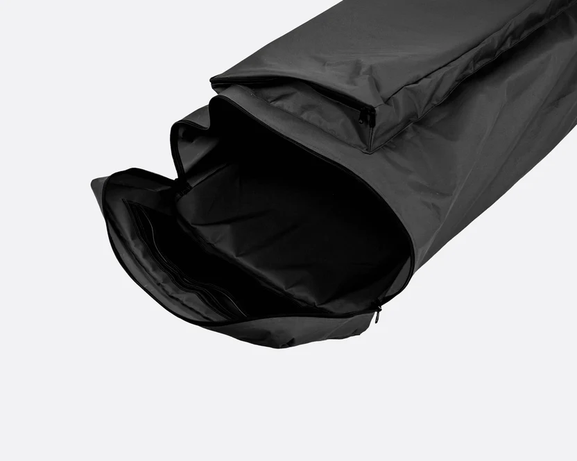 The parts fit neatly inside this bag, for secure and dust-free storage. It has a front pocket for the fabric, a small pocket for hardware, and a large section for the frame poles.