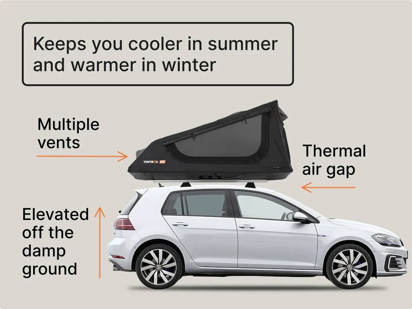 The GO is the most streamlined TentBox – ultra-lightweight, cleverly designed, and ideal for spontaneous getaways.