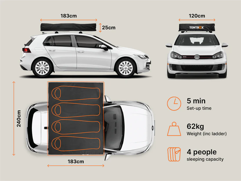 The Lite XL is a 4-berth roof tent, with a super-king mattress that comfortably sleeps four adults – great for families, pets, or anyone who likes extra space.