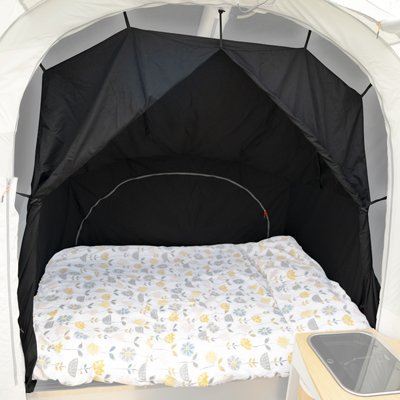 Upgrade your bedtime with our Sleeptight inner tents, the most luxurious way to sleep in an OPUS. Don’t just take it from us; Top Gear’s Chris Harris said it was ‘the best night’s sleep he’s had under a tent’. Sleeptight inner tents prevent unwanted light from entering the sleeping area so you can rest no matter the time of day. These inner tents attach to the bedpod area to create an isolated sleeping space, closing with magnetic clasps at the main curtain door for ease-of-use. This includes a zipped rear window as well as inner storage pockets.