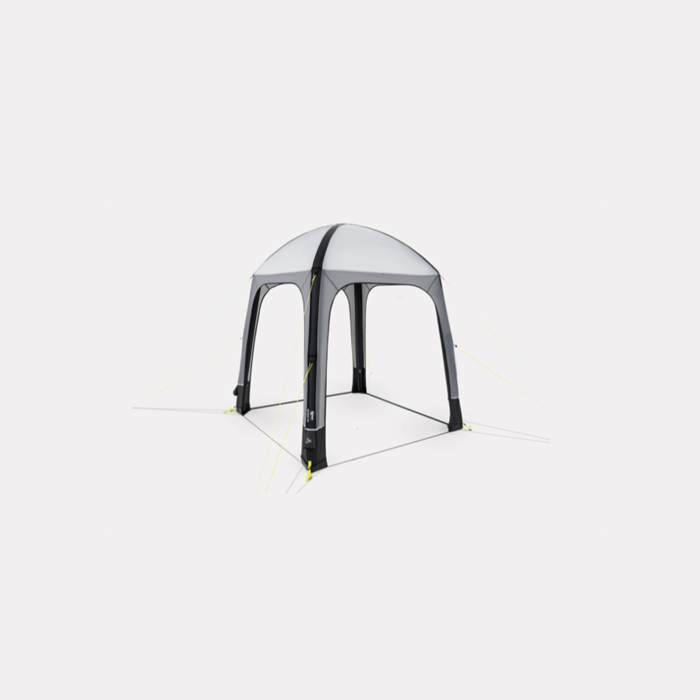 With the help of the included hand pump, the AIR shelter can be pitched quickly. All you have to do is secure the four corners and inflate using the two points on the exterior of the shelter. Tensioning straps on the underside of the shelter guarantee that it remains square, while sturdy guylines and included pegs keep it stable. Four side panels are included as standard for privacy and extra weather protection.