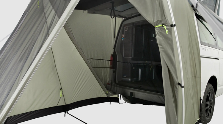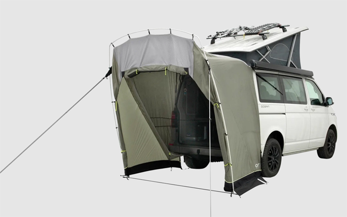 Lightweight, compact, quick and simple to set up. As a fixed awning that is attached on the back of a vehicle and has only one aluminum pole, it is incredibly lightweight, compact, and doesn’t obstruct vehicle doors. It is intended for vehicles such as the VW Caddy, Citroen Berlingo, Peugeot Rifter, and others. With its easily adjustable height options, it’s also suited for smaller cars and SUVs. It may be used as a day shelter, a changing room, or for cooking during day trips and camping. When you go on a hike or bike ride, you can lock and close the tailgate securely thanks to its clever design, or you can keep it open all night long as you secure the back of your van with its insect-proof screen for excellent ventilation.