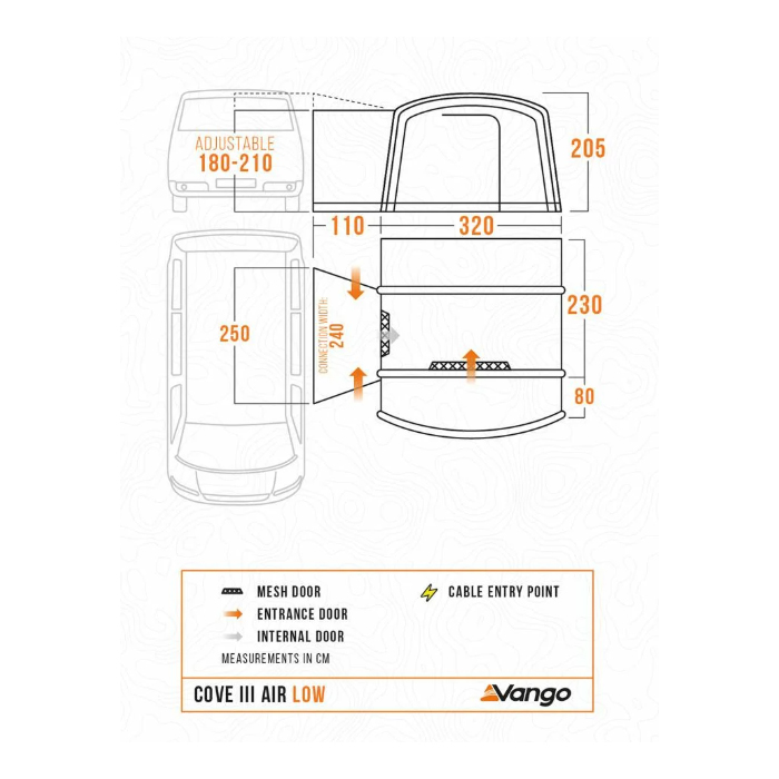 Transform your camping experience with the Vango Cove III Air LOW, the ultimate solution for creating extra living space while on the road. Designed for campervans and motorhomes, this premium awning combines innovation, convenience, and style, making it an essential addition to your outdoor adventures.