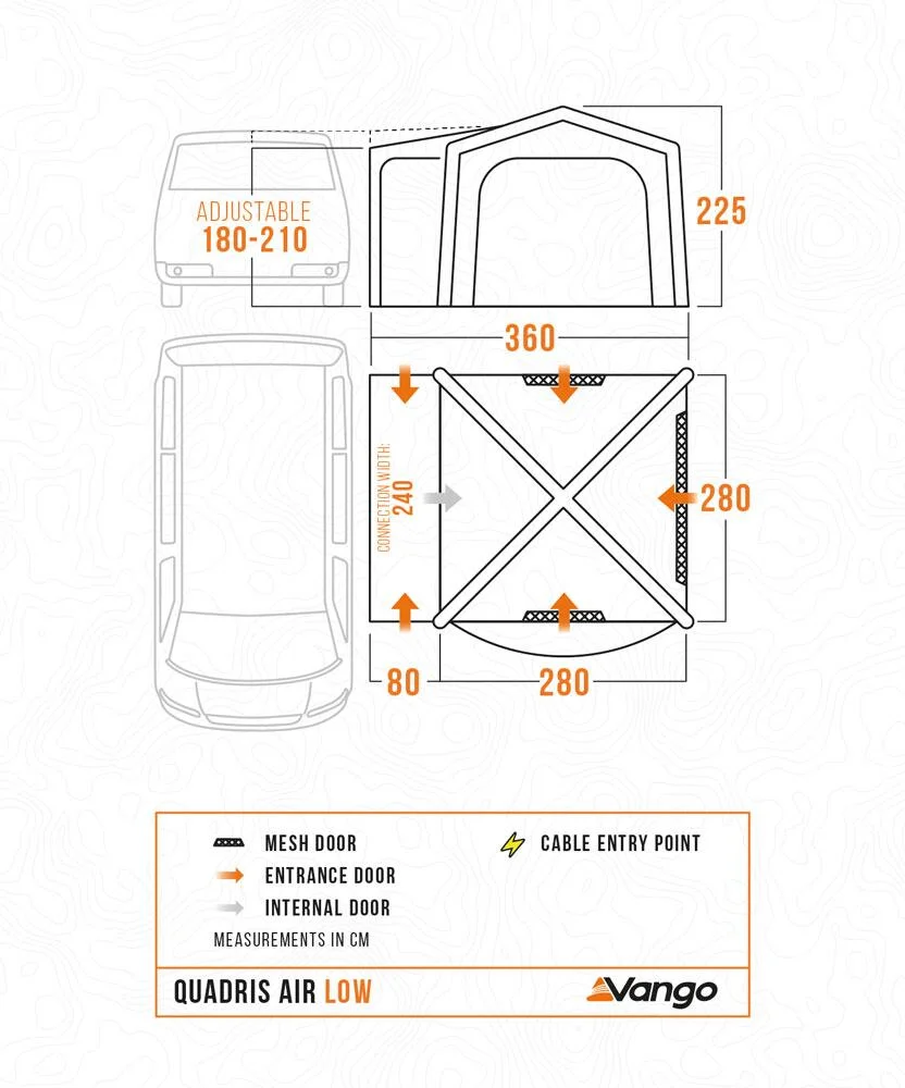 The Quadris is a versatile AirBeam drive-away awning designed for comfort, flexibility, and year-round adventure.