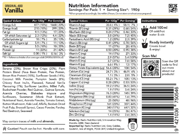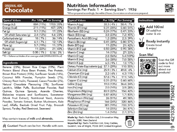 Fuel your adventures with Radix Nutrition Food – 400 Range, the ultimate choice for outdoor enthusiasts and active individuals. Designed by Radix, this premium nutritional solution is perfect for camping, hiking, and exploring the great outdoors. Lightweight and compact, it’s easy to pack without adding bulk to your gear.