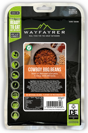 - Cowboy BBQ Beans: Beans and plant-based bacon pieces in a tangy, smoky BBQ sauce.