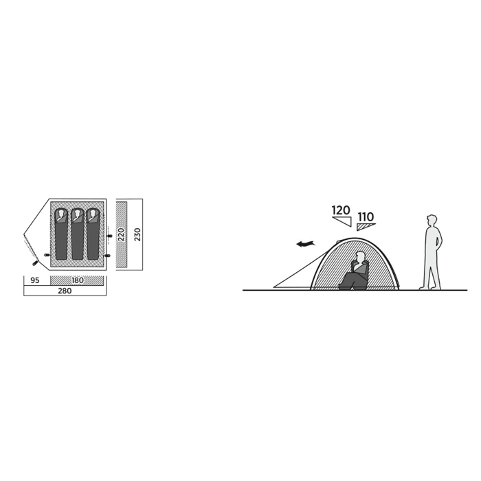 The Rondane 3 tent is designed for adventurers on foot or two wheels. Its compact packed size and lightweight design are optimized for bicycle and trekking adventures. The tent features a rear entrance for easy access to the inner tent, front ventilation, and a front entry with a large porch for storage, ensuring a comfortable and convenient outdoor experience.
